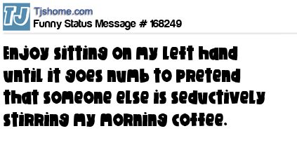 X says Enjoy sitting on my left hand until it goes numb to pretend that someone else is seductively stirring my morning coffee.