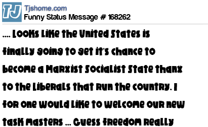 X .... Looks like the United States is finally going to get it's chance to become a Marxist Socialist State thanx to the Liberals that run the country. I for one would like to welcome our new task masters ... Guess freedom really wasn't free ...