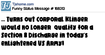X ... Turns out Corporal Klinger would no longer qualify for a Section 8 Discharge in today's enlightened US Army!
