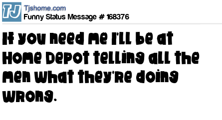 X says If you need me I'll be at Home Depot telling all the men what they're doing wrong.