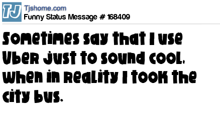X says Sometimes say that I use Uber just to sound cool, when in reality I took the city bus.