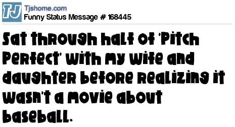 X says Sat through half of 'Pitch Perfect' with my wife and daughter before realizing it wasn't a movie about baseball.