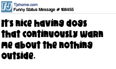 X says It's nice having dogs that continuously warn me about the nothing outside.