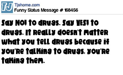 X says Say NO! to drugs. Say YES! to drugs. It really doesn't matter what you tell drugs because if you're talking to drugs, you're taking them.