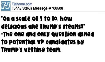 X says "On a scale of 9 to 10, how delicious are Trump's steaks?" -The one and only question asked to potential VP candidates by Trump's vetting team.