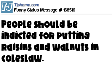 X says People should be indicted for putting raisins and walnuts in coleslaw.