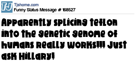 X Apparently splicing teflon into the genetic genome of humans really works!!! Just ask Hillary!