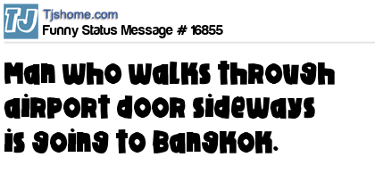 - # 23065 Confucius says "Man who walk through airport door sideways is going to Bangkok."