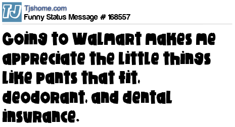 X says Going to Walmart makes me appreciate the little things like pants that fit, deodorant, and dental insurance.