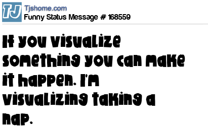 X says If you visualize something you can make it happen. I'm visualizing taking a nap.