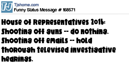 X says House of Representatives 2016: Shooting off guns -- do nothing. Shooting off emails -- hold thorough televised investigative hearings.