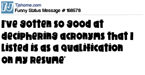 X says I've gotten so good at deciphering acronyms that I listed is as a qualification on my resume'