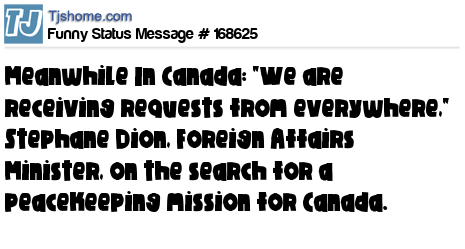 X says Meanwhile In Canada: "We are receiving requests from everywhere," Stephane Dion, Foreign Affairs Minister, on the search for a peacekeeping mission for Canada.
