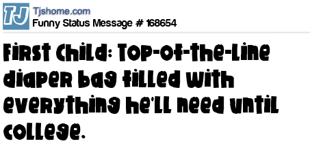 X says First Child: Top-of-the-line diaper bag filled with everything he'll need until college.