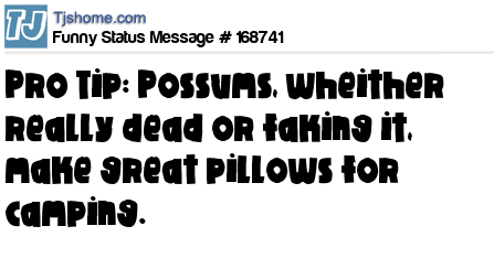 X says Pro Tip: Possums, wheither really dead or faking it, make great pillows for camping.