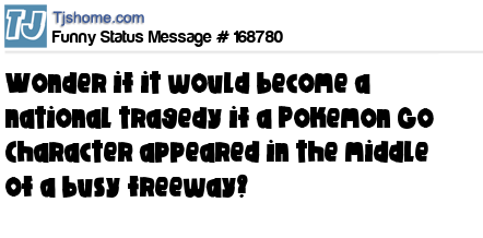 - # 168762 ..... Wonder what would happen if a Pokemon Go character accidentally appeared in the middle of a busy freeway?