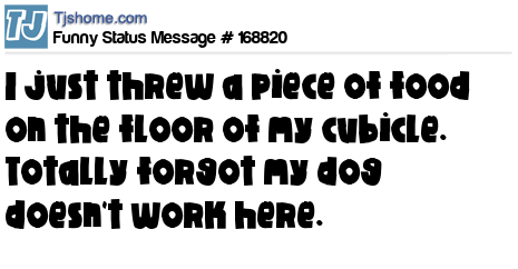 X says I just threw a piece of food on the floor of my cubicle. Totally forgot my dog doesn't work here.