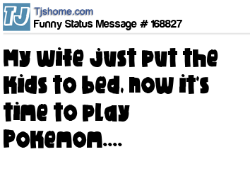 X says My wife just put the kids to bed, now it's time to play Pokemom....