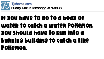 X says If you have to go to a body of water to catch a water Pokemon, you should have to run into a burning building to catch a fire Pokemon.