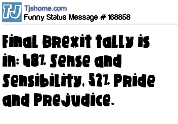 X says Final Brexit tally is in: 48% Sense and Sensibility, 52% Pride and Prejudice.