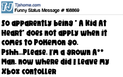 X says so apparently being " A Kid At Heart" does not apply when it comes to Pokemon go. Pshh...Please. I'm a grown A** Man. now where did I leave my Xbox contoller