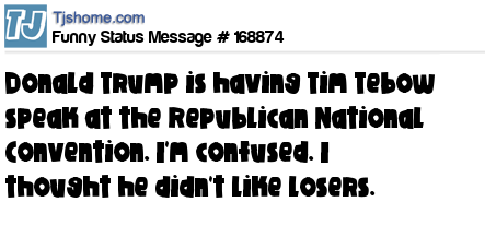 X says Donald Trump is having Tim Tebow speak at the Republican National Convention. I'm confused. I thought he didn't like losers.