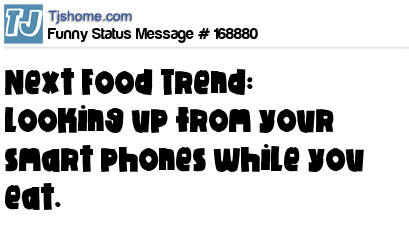 X says Next Food Trend: Looking up from your smart phones while you eat.