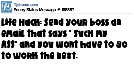 X says Life Hack: Send your boss an email that says " Suck my A$$" and you wont have to go to work the next.