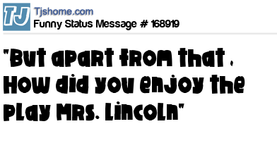 X says "But apart from that , How did you enjoy the play Mrs. Lincoln"