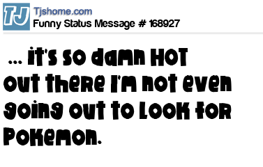 X ... it's so damn HOT out there I'm not even going out to look for Pokemon.