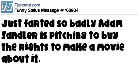 X says Just farted so badly Adam Sandler is pitching to buy the rights to make a movie about it.