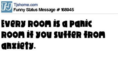 - # 160595 Here is my panic room. Over there is my slightly anxious room, and next to the foyer is my complete mental breakdown room.