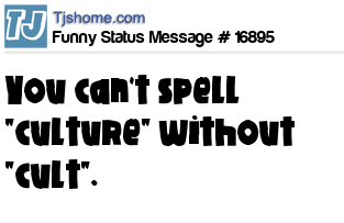 - # 209694 A cult is an unpopular religion. A religion, is a popular cult. It's a cult. You're a cult member.