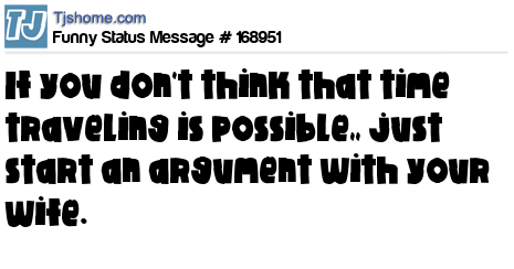 X says If you don't think that time traveling is possible,, just start an argument with your wife.