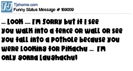 - # 168982 If you run into a wall or walk off a cliff while chasing a Pikachu, I'm going to Laughatchu.