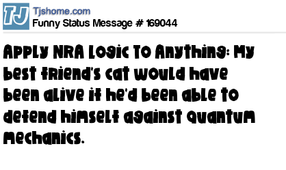 X says Apply NRA Logic To Anything: My best friend's cat would have been alive if he'd been able to defend himself against quantum mechanics.