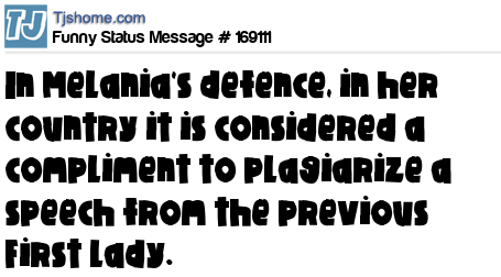 X says In Melania's defence, in her country it is considered a compliment to plagiarize a speech from the previous First Lady.