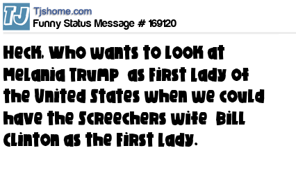 X Heck, Who wants to look at Melania Trump as First Lady of the United States when we could have the Screechers wife Bill Clinton as the First Lady.