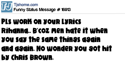 X Pls work on your lyrics Rihanna.. B'coz men hate it when you say the same things again and again. No wonder you got hit by Chris Brown.