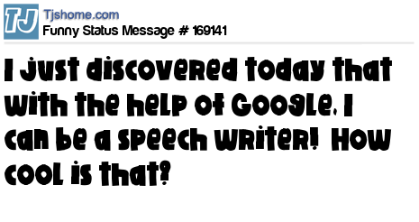 X I just discovered today that with the help of Google, I can be a speech writer! How cool is that?