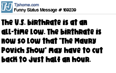 X says The U.S. birthrate is at an all-time low. The birthrate is now so low that "The Maury Povich Show" may have to cut back to just half an hour.