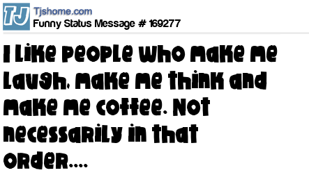 X says I like people who make me laugh, make me think and make me coffee. Not necessarily in that order....