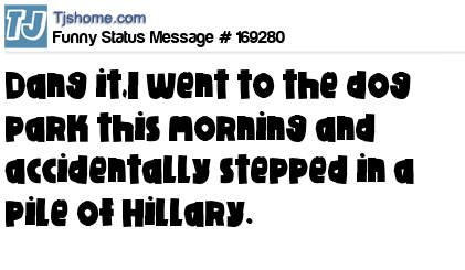 X says Dang it,I went to the dog park this morning and accidentally stepped in a pile of Hillary.