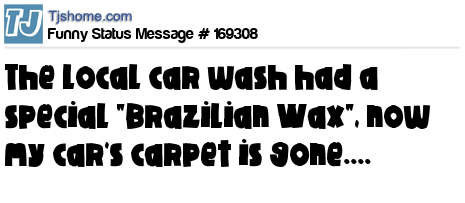 X says The local car wash had a special "Brazilian Wax", now my car's carpet is gone....