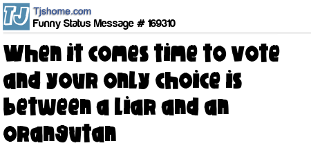 X says When it comes time to vote and your only choice is between a liar and an orangutan
