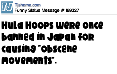 - # 169341 Pro Tip: Hula Hoops were once banned in Japan for causing "obscene movements".