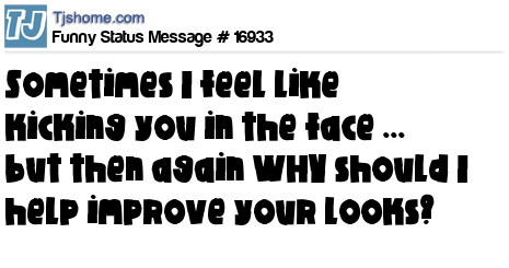 - # 42404 Sometimes I feel like kicking you in the face....but then again WHY should I help improve your looks?