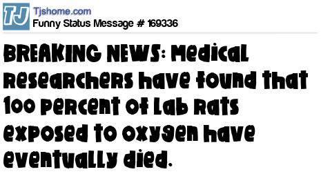 X says BREAKING NEWS: Medical researchers have found that 100 percent of lab rats exposed to oxygen have eventually died.
