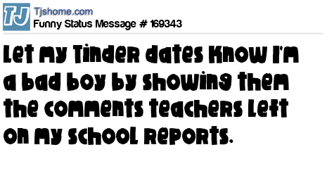 X says Let my Tinder dates know I'm a bad boy by showing them the comments teachers left on my school reports.