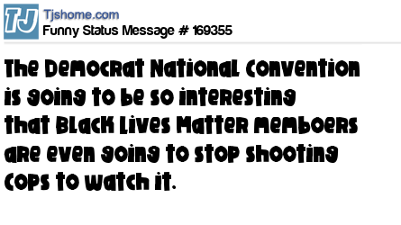 X The Democrat National Convention is going to be so interesting that Black Lives Matter memboers are even going to stop shooting Cops to watch it.